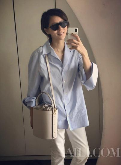 奶油蓝对白皮友好,但对黄皮也还不错,对肤色不够自信的女生可以选择颜色更浅的奶油蓝,让白色更多的融入其中,会让整体颜色看上去都更加明亮。