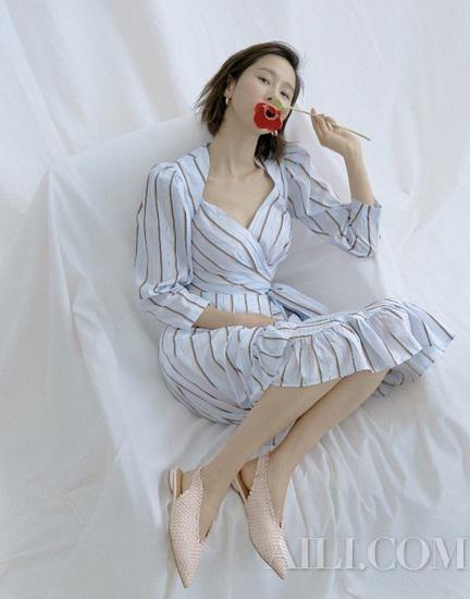 加入一点条纹元素或者选择一件很有设计感的单品也是不错的选择,还可以调和与肤色的匹配度,让人们的视线也一起被吸引。