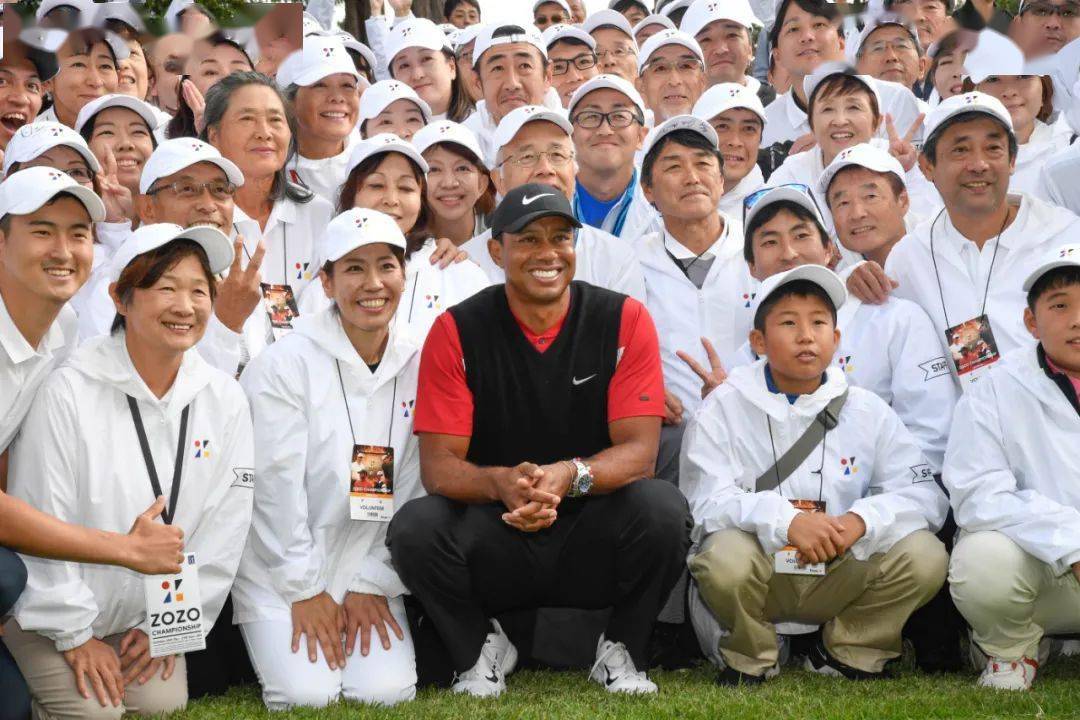 (老虎ZOZO锦标赛夺冠后与志愿者合影)