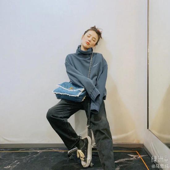 之前晒出的私服照里面,灰色卫衣搭配黑色牛仔裤和帆布鞋,简简单单的一身酷女孩穿搭。加上一个大size的牛仔包包,就很时尚博主了!