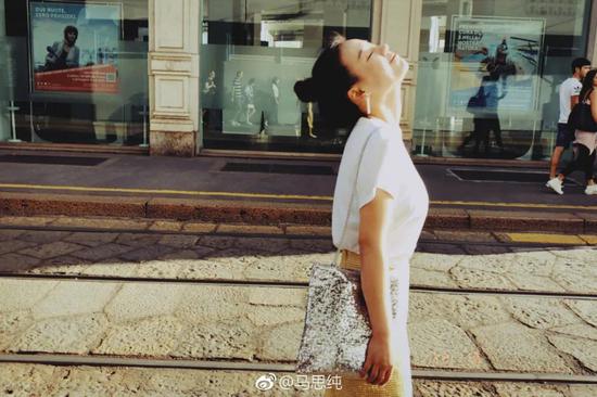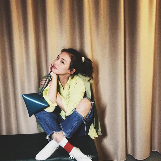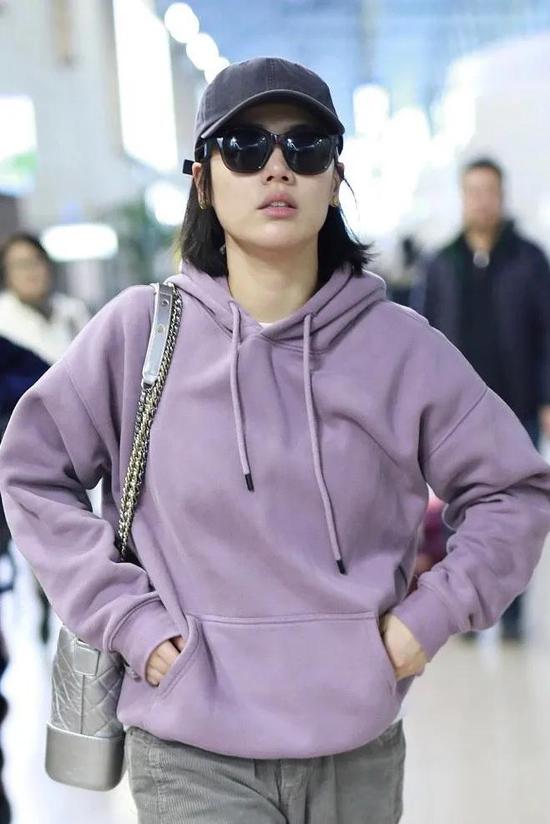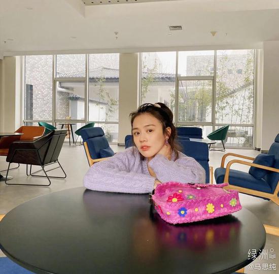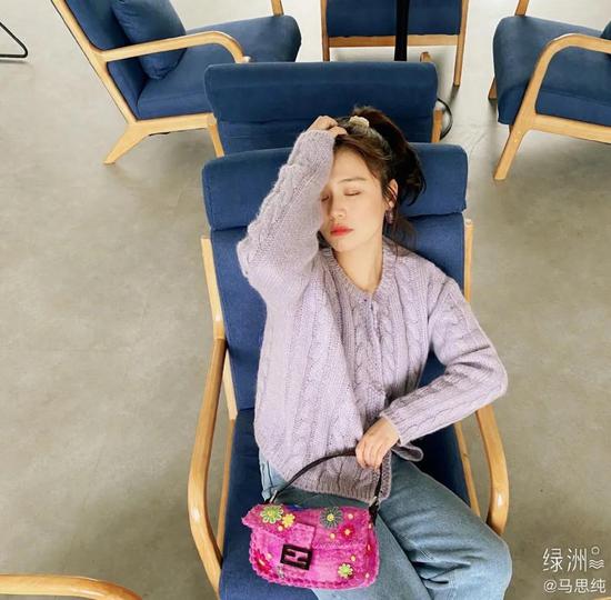 今年你们买香芋紫色单品了吗?实在是太太太太流行啦。一件香芋紫色的针织上衣,温柔气色尽显。搭配一个粉色的花朵包包,四季的颜色,全都穿在了马思纯的身上啦。