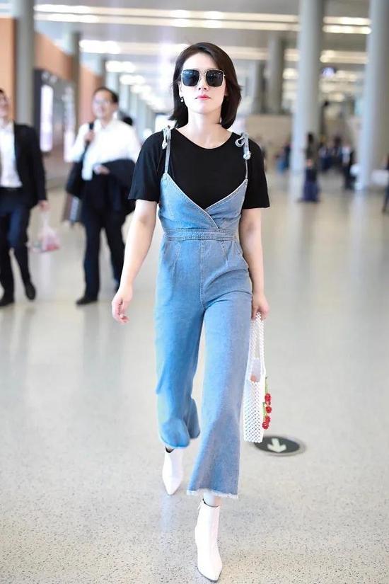 除了那种软软的网兜包,还有这种她之前拎过的串珠小包~今年各种时尚博主都在提。花朵串珠包包搭配牛仔背带裤,穿上拍照一定很好看!