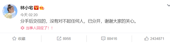再后来就是7.13的今天,林小宅微博发声解释了一下,顺便官宣即分手。
