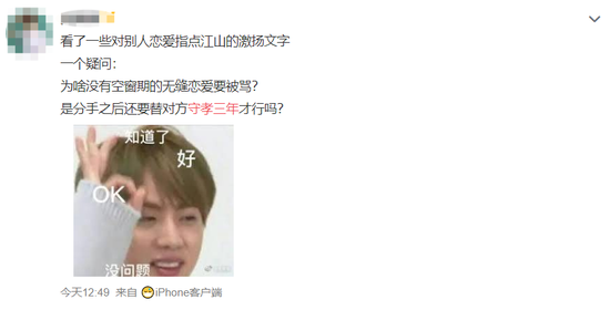 “我都不明白凭什么要有空窗期,想谈就谈,关你屁事。”