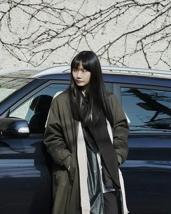 另一波选手则钟情于暗黑系的风衣,关晓彤的all black工装款把帅气拿捏的死死的。