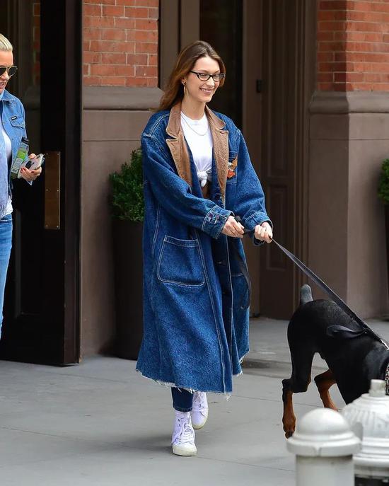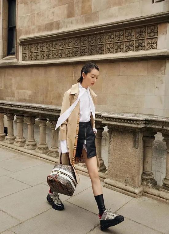 中性风的女孩穿起风衣则是另一种调调,刘雨昕的皮质风衣将斯文气质尽显,松松垮垮的版型随性又自然。