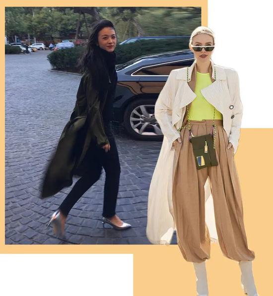 今秋风衣在面料的选择较以往更加多样,薄纱风衣更好地贴合身体的曲线显得身形纤长。