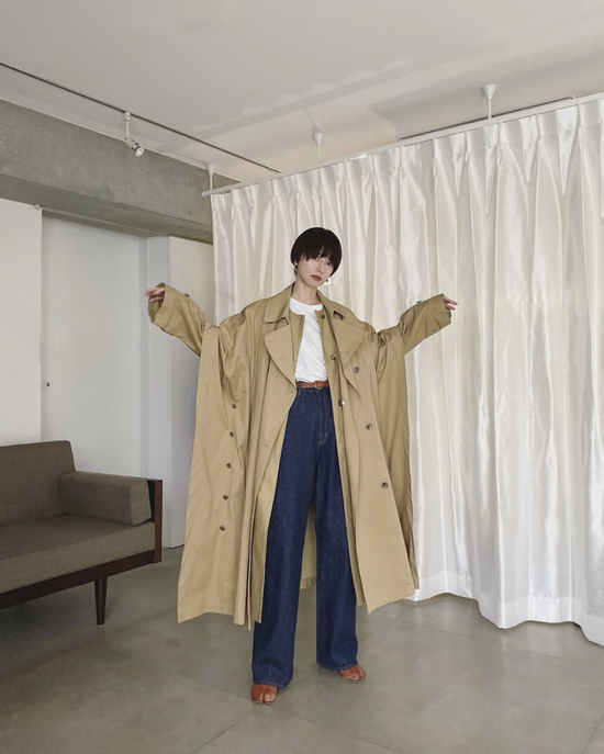 同时版型宽松的风衣最好是选择插肩袖的设计,无明显的肩线会让整体变得柔和随性。