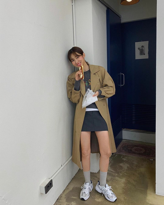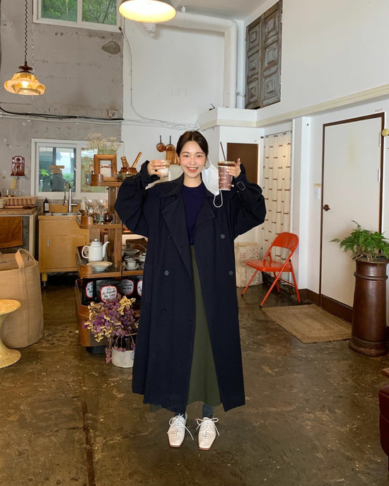 除了知性优雅的大女人爱它,风衣也可以完美match小女生的甜美。看祖儿这一身深蓝风衣与格纹裙、小白鞋融汇在一起,满屏都是少女青春的气息。