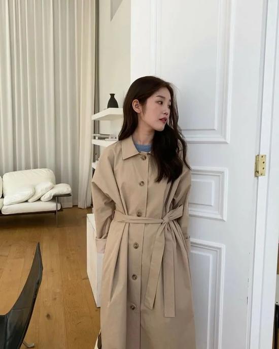 普遍轻薄款的风衣选择柔和色彩的款式,才能将女性的温柔气质最大化展现。
