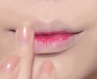 Step3:用指腹(棉签) 将唇膏由内而向外、由深到浅进行晕染。