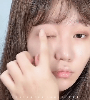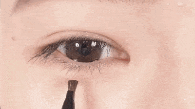 光是做到了卧蚕提亮是不够的,接下来是找准卧蚕的位置,画上卧蚕阴影,这样会让妆容更加立体且高级。位置就在笑起来眼下的一个凹点,用咖啡色的眼影画在瞳孔正下方,然后再进行晕染,中间深两边浅卧蚕看起来更加自然,放大双眼的效果也好。