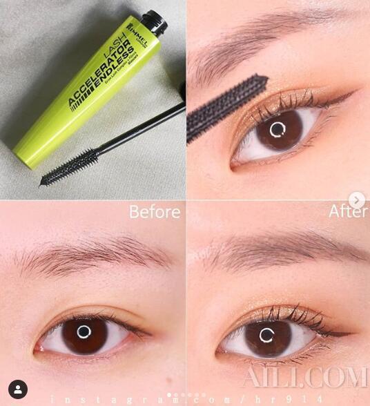 先涂上一层纤长型的睫毛膏,再等待干透之后,再在眼尾用浓密型的睫毛膏加持一下。最好在上睫毛膏之前使用睫毛打底液,这样睫毛会挺拔卷翘一整天哦 ~