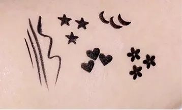 利用眼影、眼线笔、眉笔其实都可画出不同形状,另外,还有一些双头眼线笔的一头是各种形状的小印章,可以直接印在需要的位置,也比较方便,很比较适合“一看就会,一学就废”的小姐妹哦~
