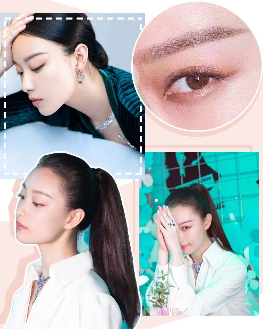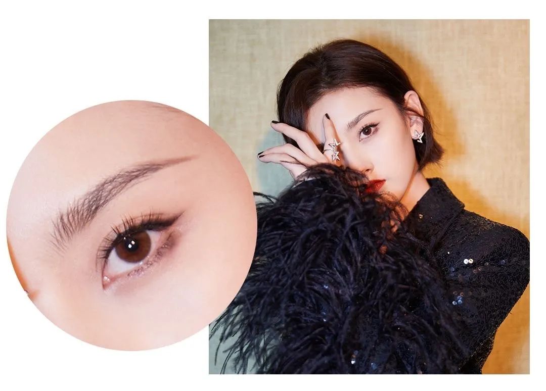 过多的面部颜色会增加妆感,所以,在眼影颜色使用上的克制,也是明星妆容干净自然的一个重要原因。