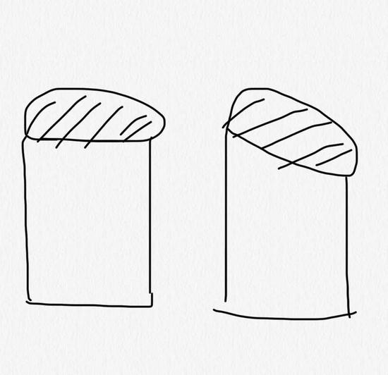 为了让你们更一目了然,画伯·黄再次出马,简单粗糙地跟你们展示一下横切面和斜切面的区别☟☟