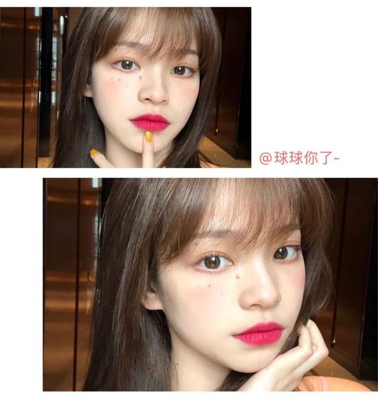 鲜嫩饱满的烂番茄色,应该是很多姐妹最爱的颜色,无论白皮还是黄皮涂上都贼好看,而且还百搭四季的妆容。