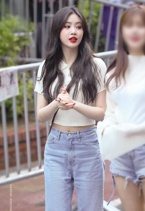 领子的花边设计让周洁琼看着又嫩又小,