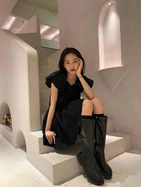 但要注意,像baby这种包裹感很强的紧身帖腿过膝靴是只有又瘦又长的大直腿才能驾驭的,弯腿穿会原形毕露。