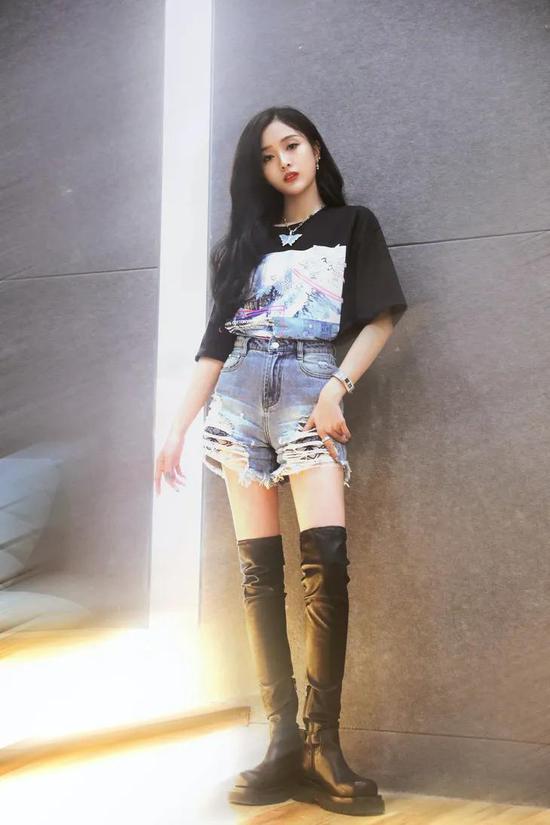 过膝靴+短裤or短裙不必多说,是辣妹们万年好穿不出错的搭配公式。