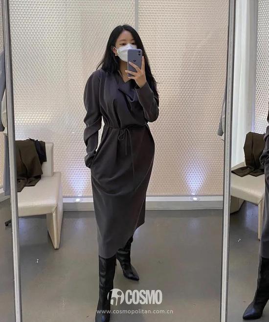 深灰长裙的优雅?