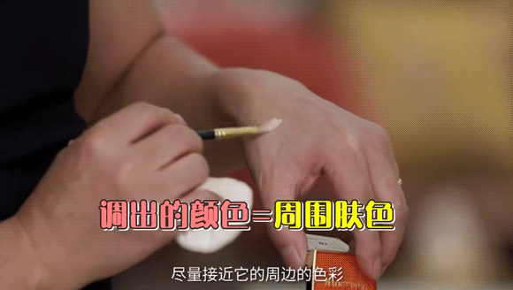 将遮瑕膏进行深浅调色,要调到和泪沟周围肌肤的颜色一致才可以哦!如果懒得调色的话就直接选择一款和眼周肤色相近的一个色号。宁愿稍微亮一点点也不要深!