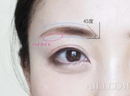 眉毛的重点不是眉尾而是眉头,眉毛的眉头下方稍稍内收,呈现自然的 45 度角,让她看起来更加柔弱。在用眉梳将眉头刷自然,更加有女人味。