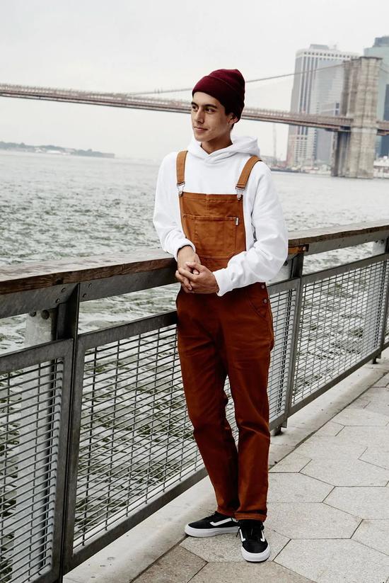 背带裤大部分是丹宁材质或者帆布材质,也有尼龙材质,硬挺耐穿,散发着复古怀旧的味道,同时又朝气蓬勃,元气满满。