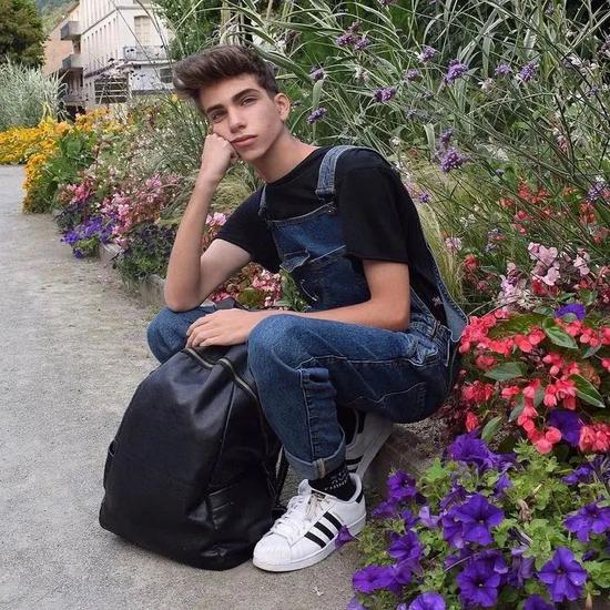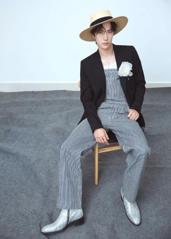 耶啵的时尚感与生俱来,清冷的少年颜可以驾驭好各种风格的衣服。细条纹背带裤搭配黑西装,十分大胆,也十分抓人眼球。草帽和尖头鞋的加入,让这身穿搭既优雅又酷帅。