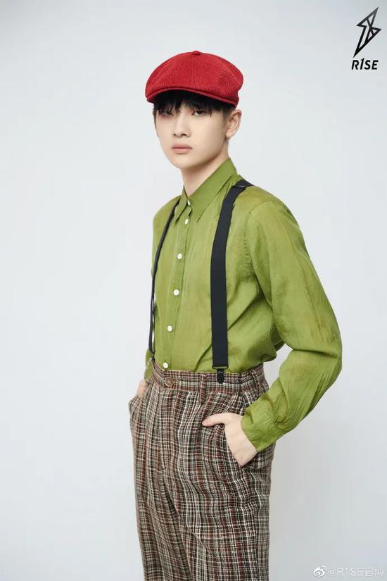 苹果绿的丝质衬衫和胭脂红的贝雷帽形成鲜明撞色,搭配格纹背带裤,复古又时髦,是周震南一贯的矜贵公子风,想要追求复古造型的达人们速速借鉴起来!