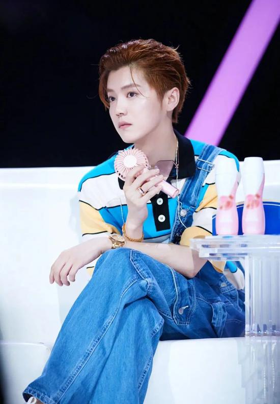 黄蓝条纹polo衫搭配牛仔蓝背带裤,鹿晗这身穿搭透出满满少年感。清爽的配色让沉闷版型的polo衫也显得俏皮活泼,极具少年气息。