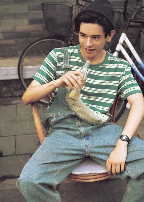 湖绿色海魂衫搭配水洗丹宁牛仔裤,清新自然,带着日系复古的味道。单边背带的穿法痞气十足,但却让整身look透着一股喷薄而出的清爽少年气。