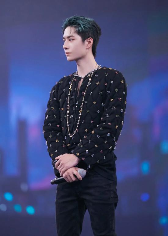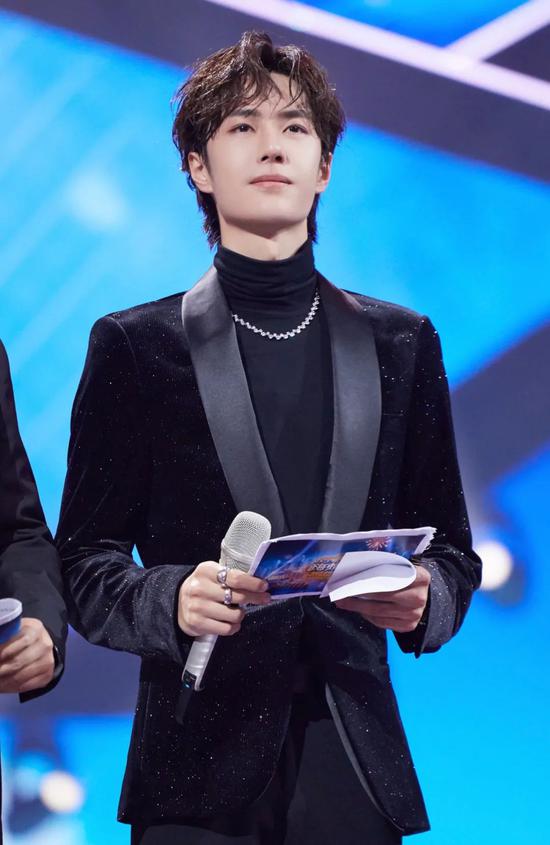 认真翻阅王一博的微博,细心的你一定发现了他一向对丝绒元素喜爱有加。同样是在舞台上,身穿黑色星星西装的王一博在聚光灯下十分惹眼,丝绒元素的加持更使他分分钟变身“贵公子”。