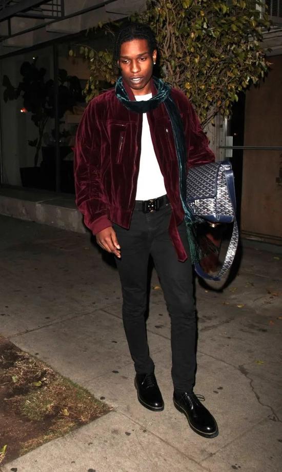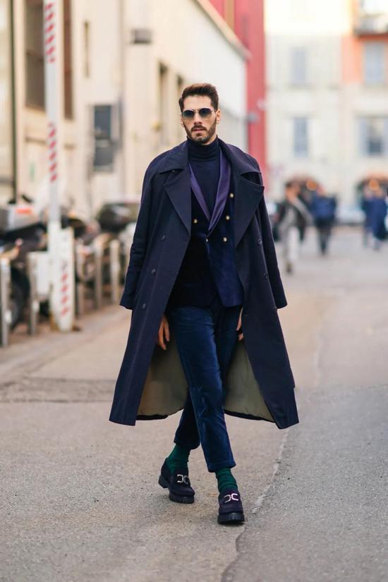 除了西装之外,夹克也是丝绒爱好者的心头好。酒红色丝绒夹克更容易在千篇一律的单品中脱颖而出,与同材质绿色丝绒围巾搭配既保暖又时尚。