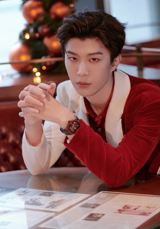 暗红色丝绒衬衫作外套,内搭金色深v背心突显完美身材。下身是同色系丝绒长裤,果然是从上到下“燃”到爆的王嘉尔。