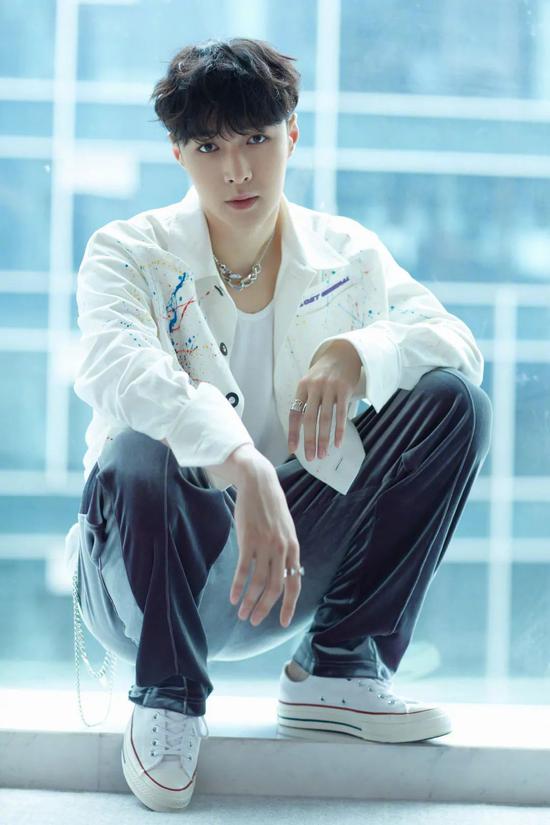 张艺兴身着丝绒长裤,与白色涂鸦外套搭配简洁大气。项链与裤链相呼应,提升了整套搭配的层次感,时尚感max!