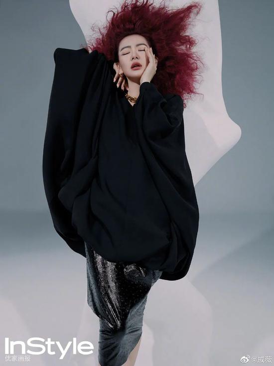 戚薇的长相不算凌厉的,但是她对于夸张的造型却驾驭的很好,这种反差感也是让人印象深刻的原因吧,讲道理,之前戚薇拍杂志时,这种红色爆炸头一般人真的是hold不住,但是在她这里毫不违和(请问有人跟我一起羡慕7哥发量吗