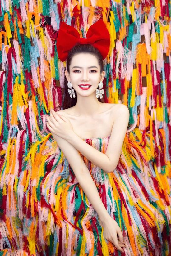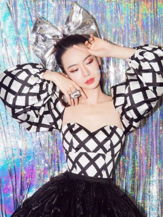 以及蝴蝶结应该是戚薇的本命元素了吧!(不瞒你们说这个大红色蝴蝶结头饰编辑还去买了同款拍照用