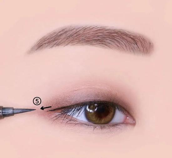 然后用黑色眼线笔画出细细的一条,尾部向下拉直即可,存在感不必过强。