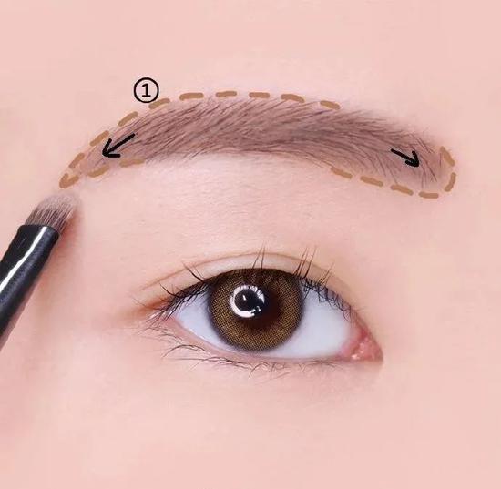 首先,用跟发色接近颜色的眉笔画出带有弧度,线条比较圆润的眉毛。