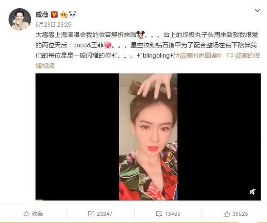 这个造型也不是随随便便的,戚薇后面也追加了对造型的解释:梳这个发型其实是在致敬两大天后——王菲和Coco,感受到了对爱豆的真心和对丸子头的执念呢~