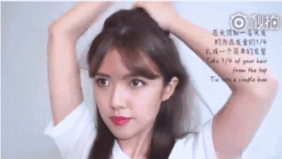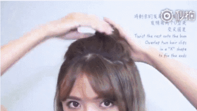 Step2:用皮筋把这个发髻再按照动图里绑出一个发髻。如果是短发女生到这步就可以结束啦!