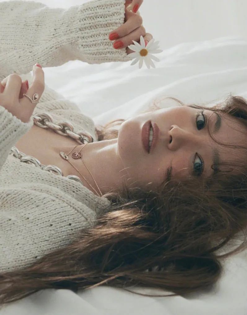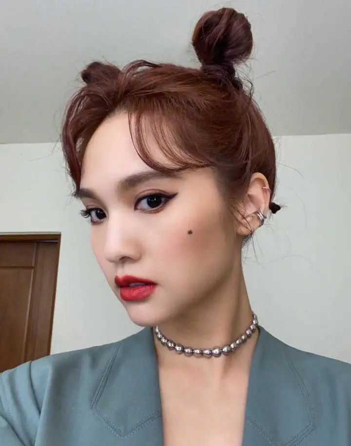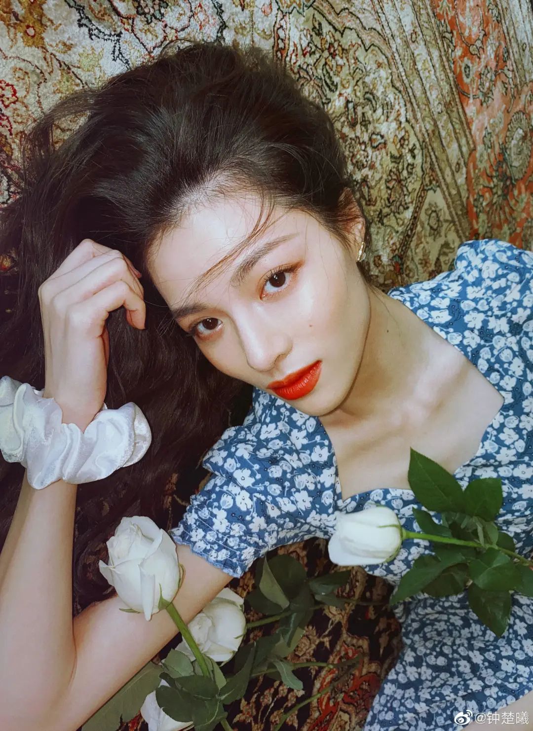 温柔的栗棕卷发、气场满满的全包式粗眼线,搭配浪漫的微醺玫瑰腮红,形成个性十足的反差,倒是有种破次元的感觉~