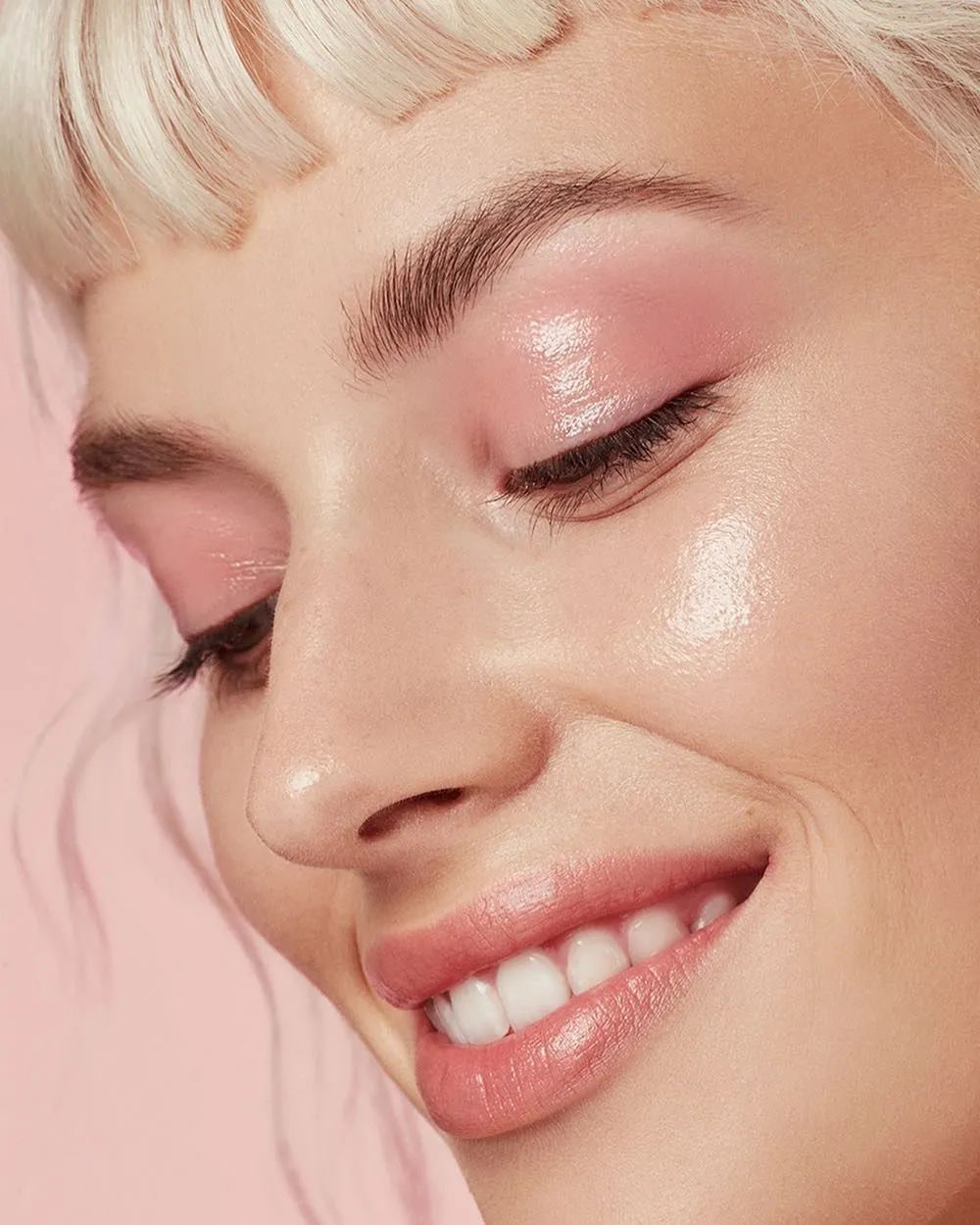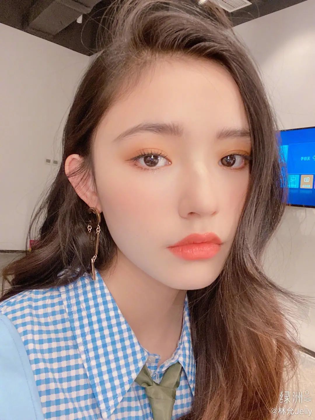 轻薄透的光泽感底妆,搭配粉色系腮红,自然又不失活力,常规的甜美风妆容,还是以往大家熟悉的“甜妹面孔”。