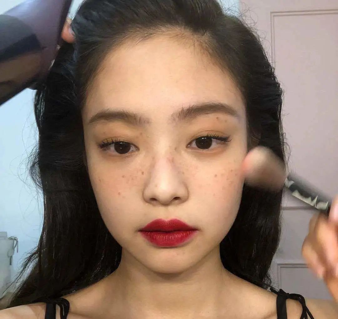 用腮红来“掩盖”妆面瑕疵,是很多化妆老手之间的秘密~ 比如,前几天刷屏的 Jennie雀斑腮红妆,在雀斑的部位也配合了一层腮红的刷饰,焦糖色的腮红妆容,在调皮的雀斑点缀下,更显健康、活力。