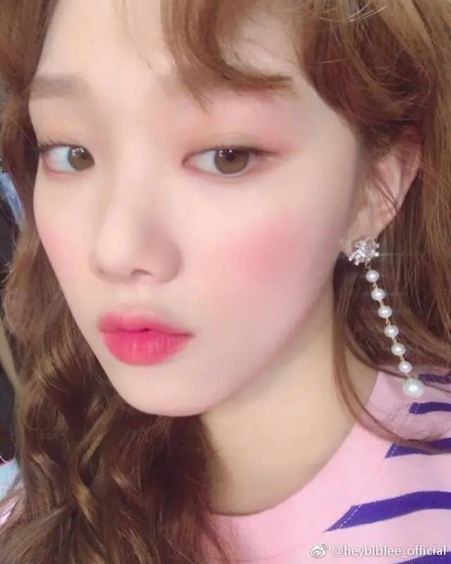 韩国妹子经常打这种腮红,比如小仙女李圣经,常常用粉色系苹果肌腮红带来软糯甜美的好气色~