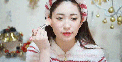 想要营造日系腮红那样稍重的氛围感,可以用刷子或者指腹轻点晕染几层即可,记得要均匀少量多次哦~
