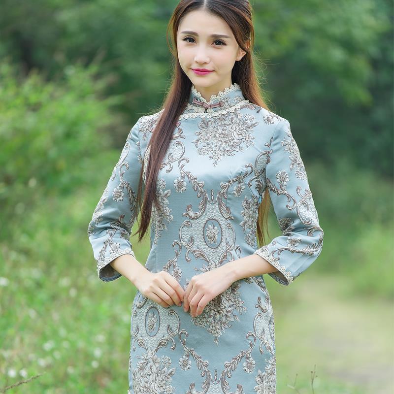 大气而婉约的设计,将别致的兰花绣在了心口上,像是一个追求浪漫爱情的女子散发出坚强的本性,流畅的腰线让身姿刚加挺拔,仿佛骨子里存着一股独立,坚强的个性,犹如兰花一般,极具气节。小高领的设计将民国女子的含蓄还原得相当到位,短袖长袖的两款选择,无论是喜欢甜美可爱,还是婉约得体,都能在这里寻找到你想要的答案,与传统的旗袍的单薄不一样,羊毛的面料能让你更好地抵御寒冬,在冷风面前依然保持着优雅的姿态。
