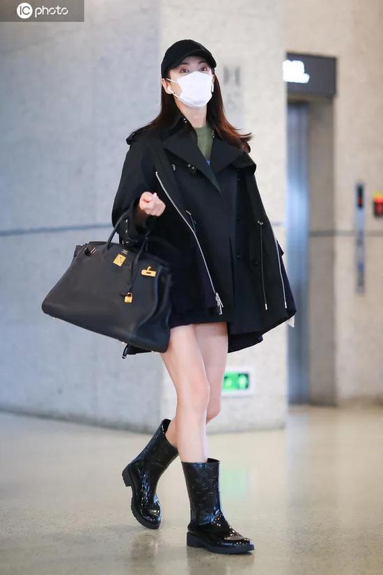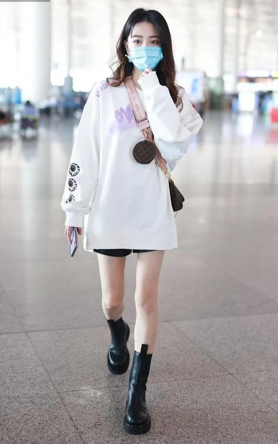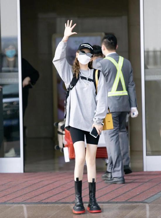 戚薇最近身穿运动休闲装,脚蹬短靴看起来活力十足。
