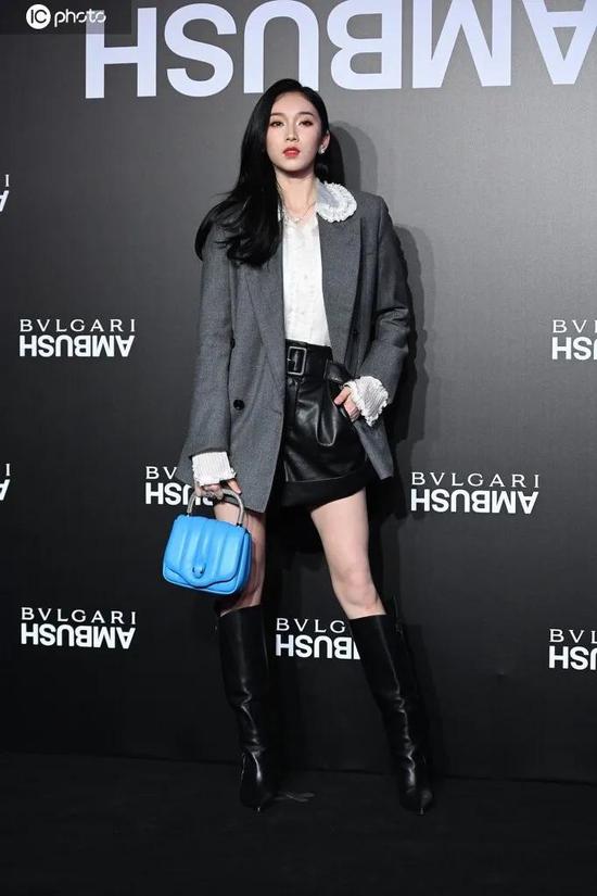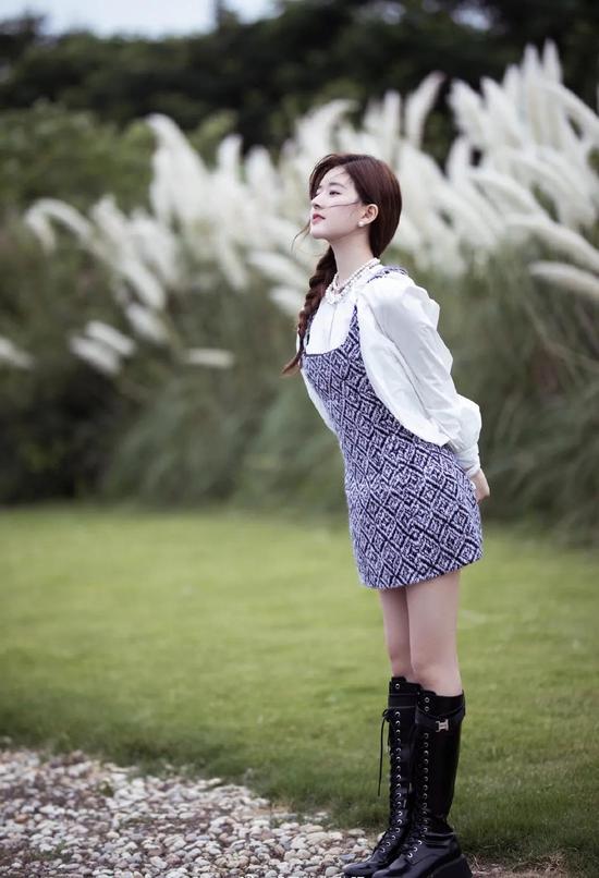 最近电视剧刚刚大结局的赵露思,身穿公主袖短裙配骑士靴,优雅又俏皮,正适合露思妹妹的娇憨气质。
